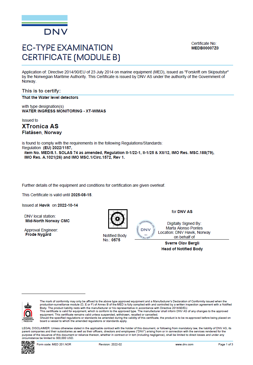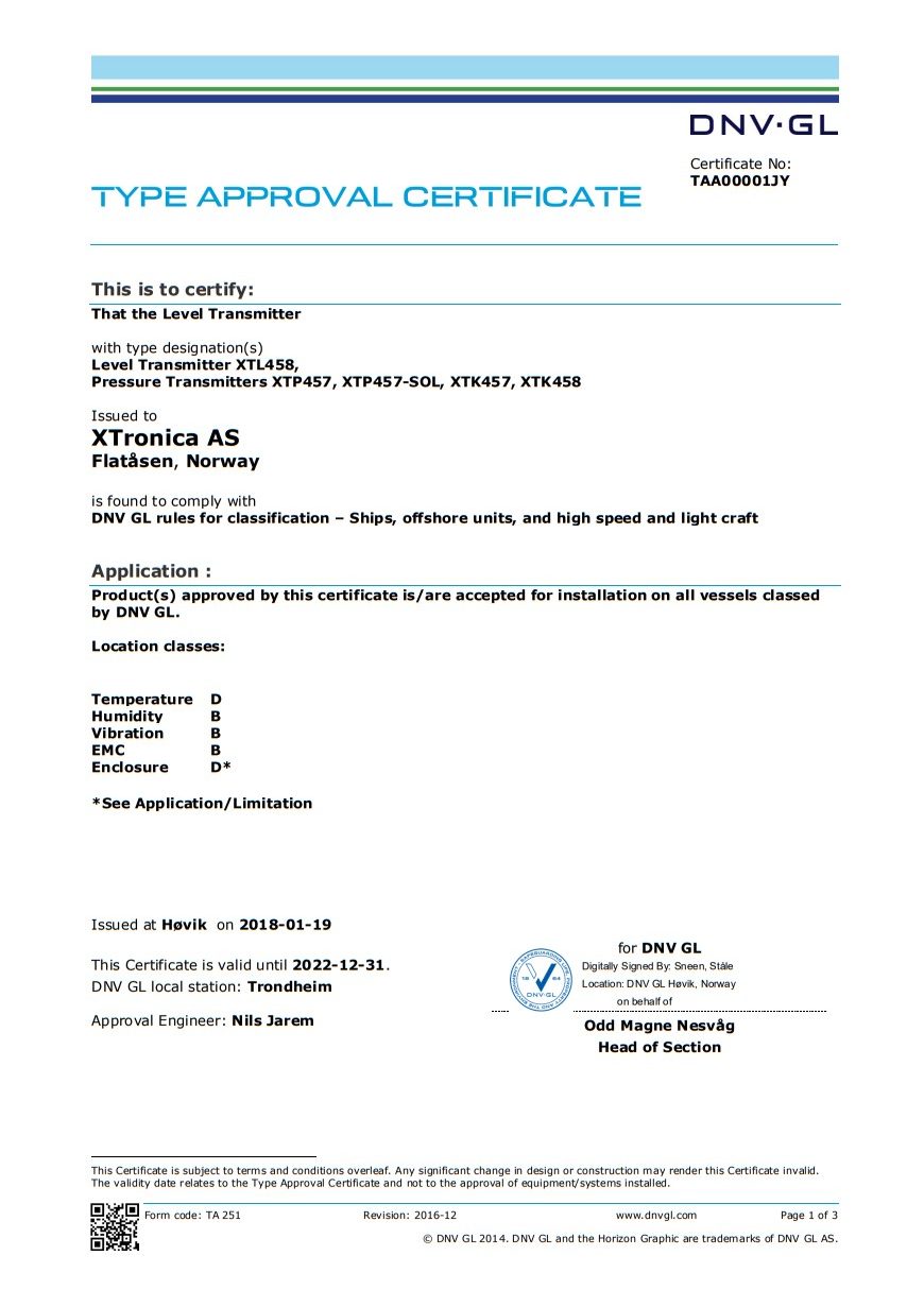 Nivåsender DNV GL Typegodkjenningssertifikat