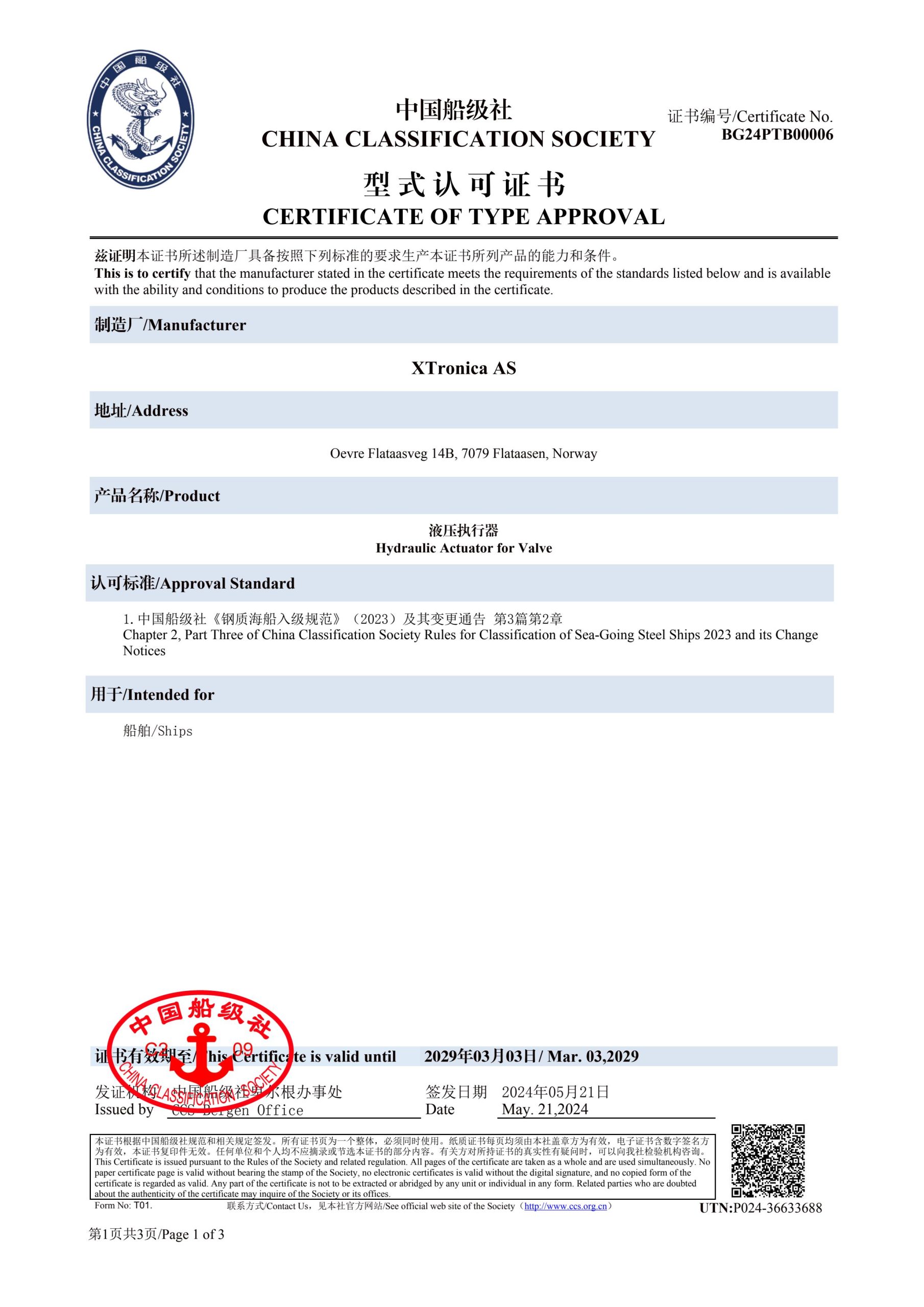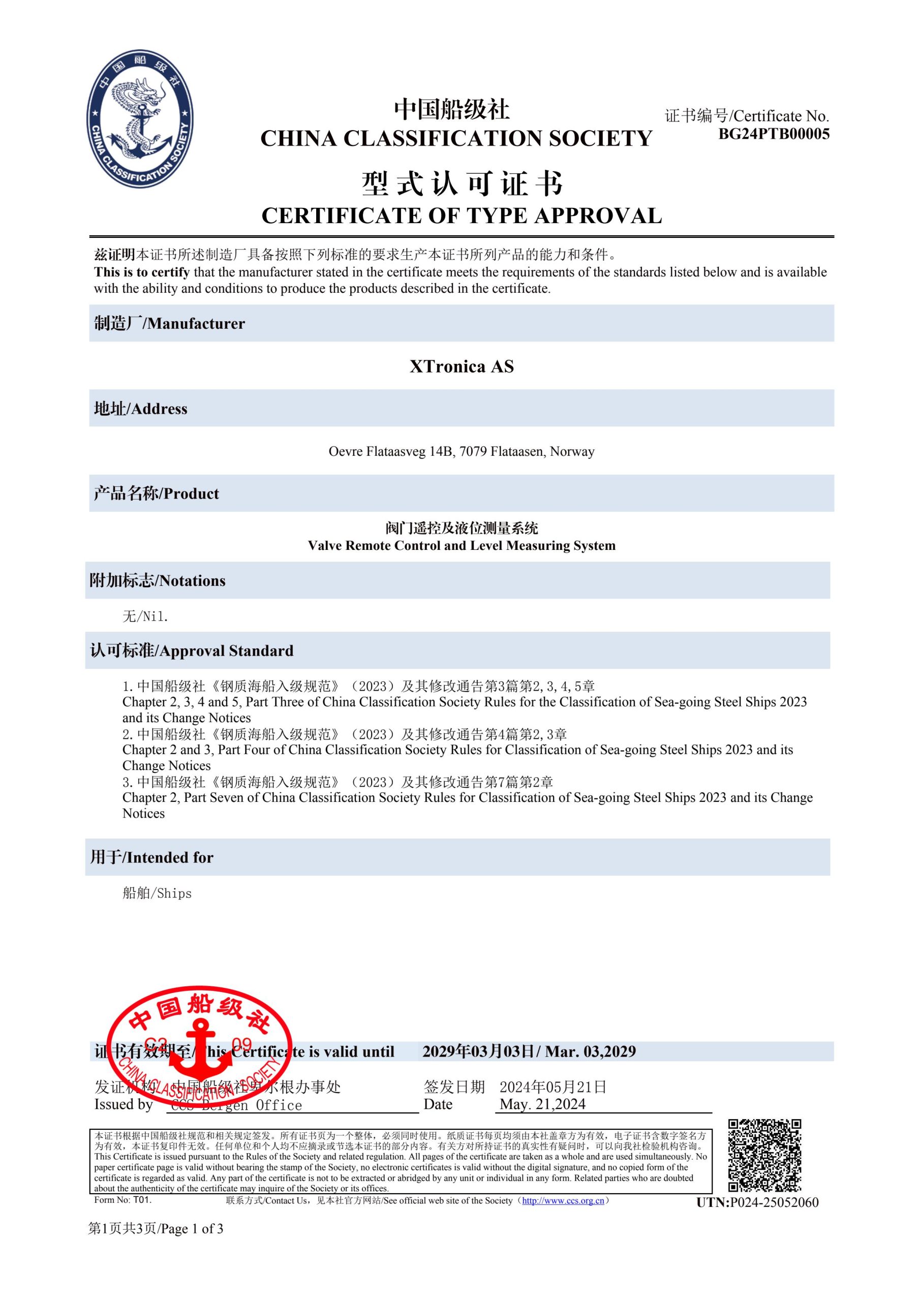 XTronica Shanghai Office BV Fabrikktypegodkjenning